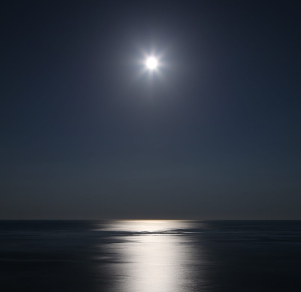 満月と夜の海に続く 光輝く月の道に心惹かれます。
